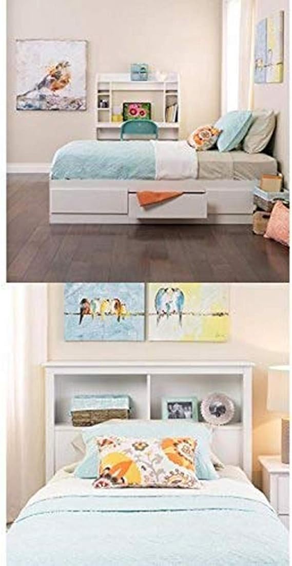 I really needed storage space and the _12_ large drawers have been invaluable. Six 18 inch deep drawers (three on each side) included in this mate's bed to stow away blankets, linens & more. Prepac white full bed headboards & footboards. The prepac twin mate's platform storage bed with three drawers does double duty. This stylish white full storage bed has six spacious drawers (three per side for each occupant) which are ideal for storing bed linens and clothes.